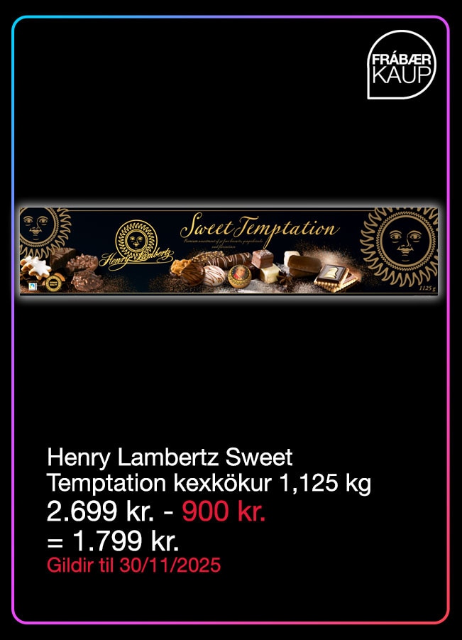 | | Youtheory túrmerik, endurbætt formúla 180 töflur (2ja mánaða birgðir) 3.499 kr. - 1.500 kr. = 1.999 kr. Gildir til 30/11/2025 | | | | | Deavas súkkulaðibombur fyrir heitt súkkulaði 12 stk. 2.249 kr. - 800 kr. = 1.449 kr. Gildir til 30/11/2025 | | | | | Kirkland Signature lasagna með nautatkjöti 1.999 kr./kg - 1.000 kr. OFF/pack Gildir til 28/11/2025 | | |