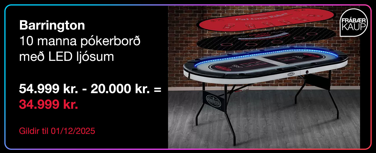 | | Over & Back borðbúnaðarsett úr steinleir 16 stk. 9.999 kr. - 3.000 kr. = 6.999 kr. Gildir til 29/11/2025 | | | | | Anker 3-í-1 hleðslukubbur með MagSafe og fjölþjóðlegu millistykki 16.999 kr. - 7.000 kr. = 9.999 kr. Gildir til 01/12/2025 | | | | | Ottlite skrifborðslampi með ljósi sem skiptir um lit og þráðlausri hleðslustöð Smelltu til að sjá málin 5.999 kr. - 1.500 kr. = 4.499 kr. Gildir til 01/12/2025 | | |