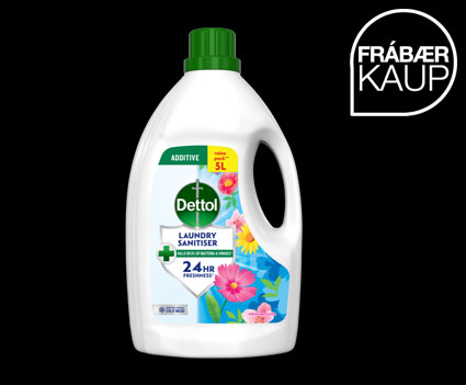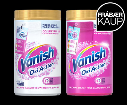 | | Dettol bakteríudrepandi þvottaefni 5L 1.699 kr. - 500 kr. = 1.199 kr. Gildir til 30/11/2025 | | | | | Lenor Unstoppables Fresh þvottailmur 735 g 2.199 kr. - 600 kr. = 1.599 kr. Gildir til 30/11/2025 | | | | | Vanish Gold 1,9 kg ÞÚ VELUR: • Oxi Action • Oxi Action Crystal White 1.999 kr. - 600 kr. = 1.399 kr. Gildir til 30/11/2025 | | |